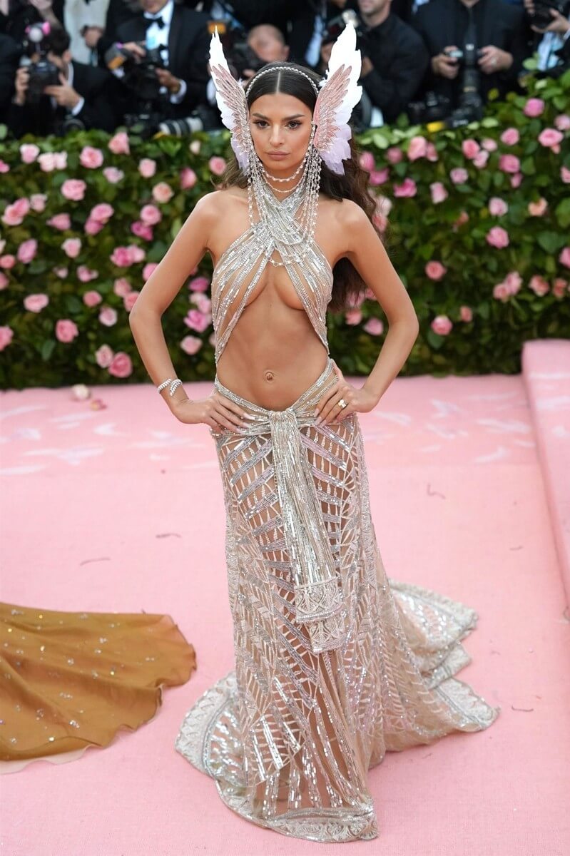 Emily was simply born to walk nude. To the delight of numerous fans, the model prefers to demonstrate the maximum of her ideal body and boldly goes out in open and very open dresses. Even on a walk with the dog in a voluminous jacket and bell-bottomed pants, the model manages to look half-naked. It’s all about a short, form-fitting crop top that exposes Emily’s chic belly.