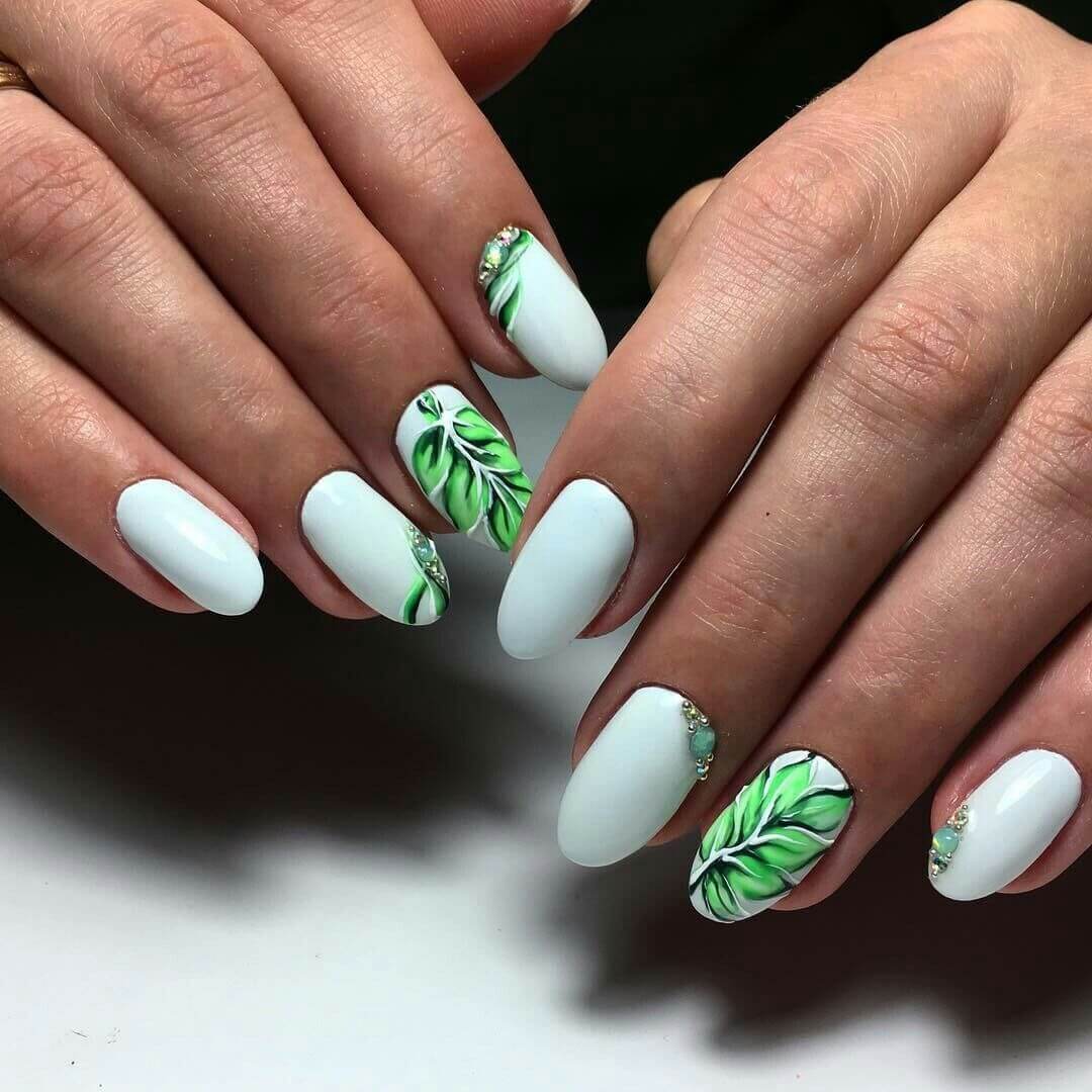 10 Summer manicure with monstera leaves Nails Designs