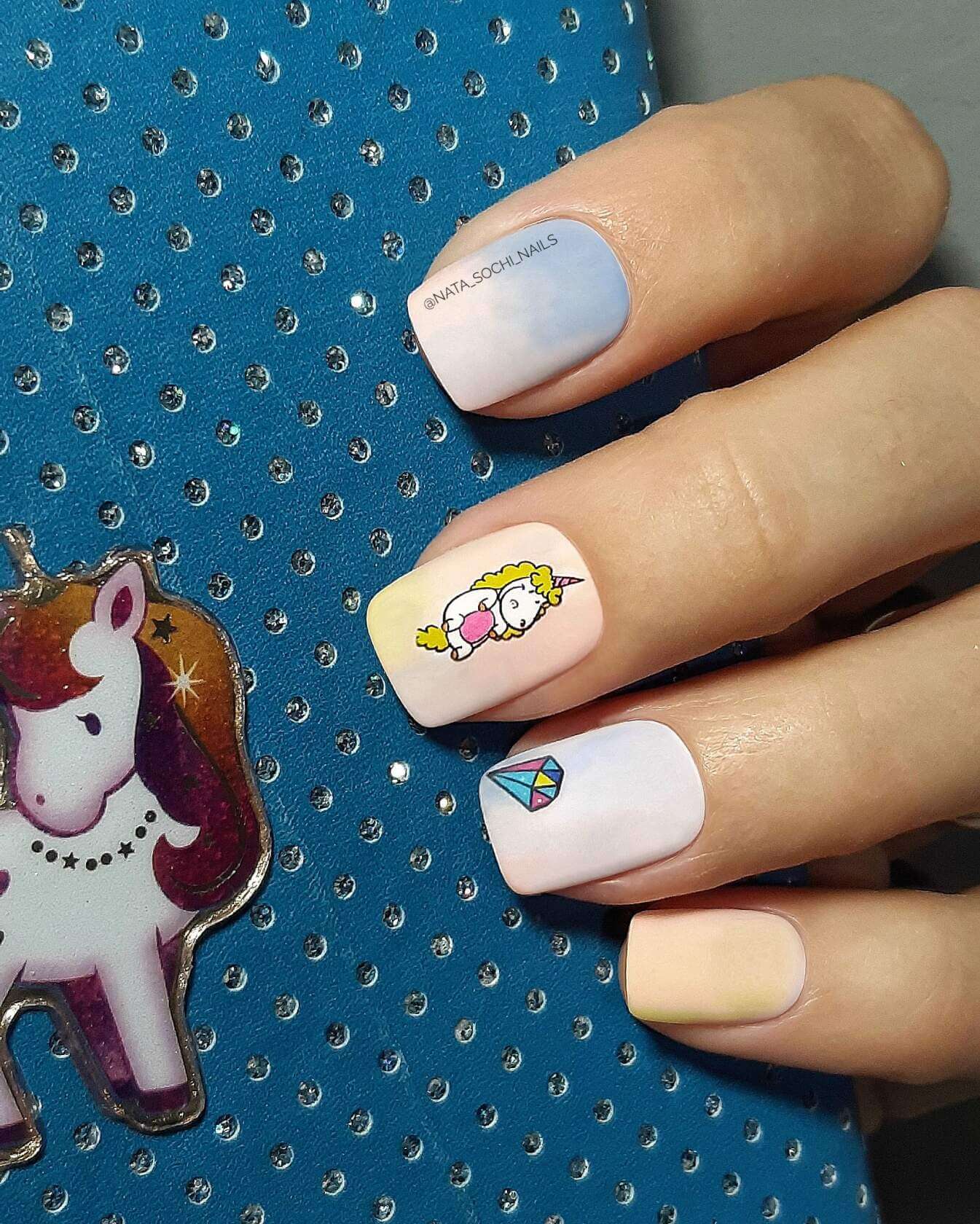 4 Gradient blue design nail polish for summer