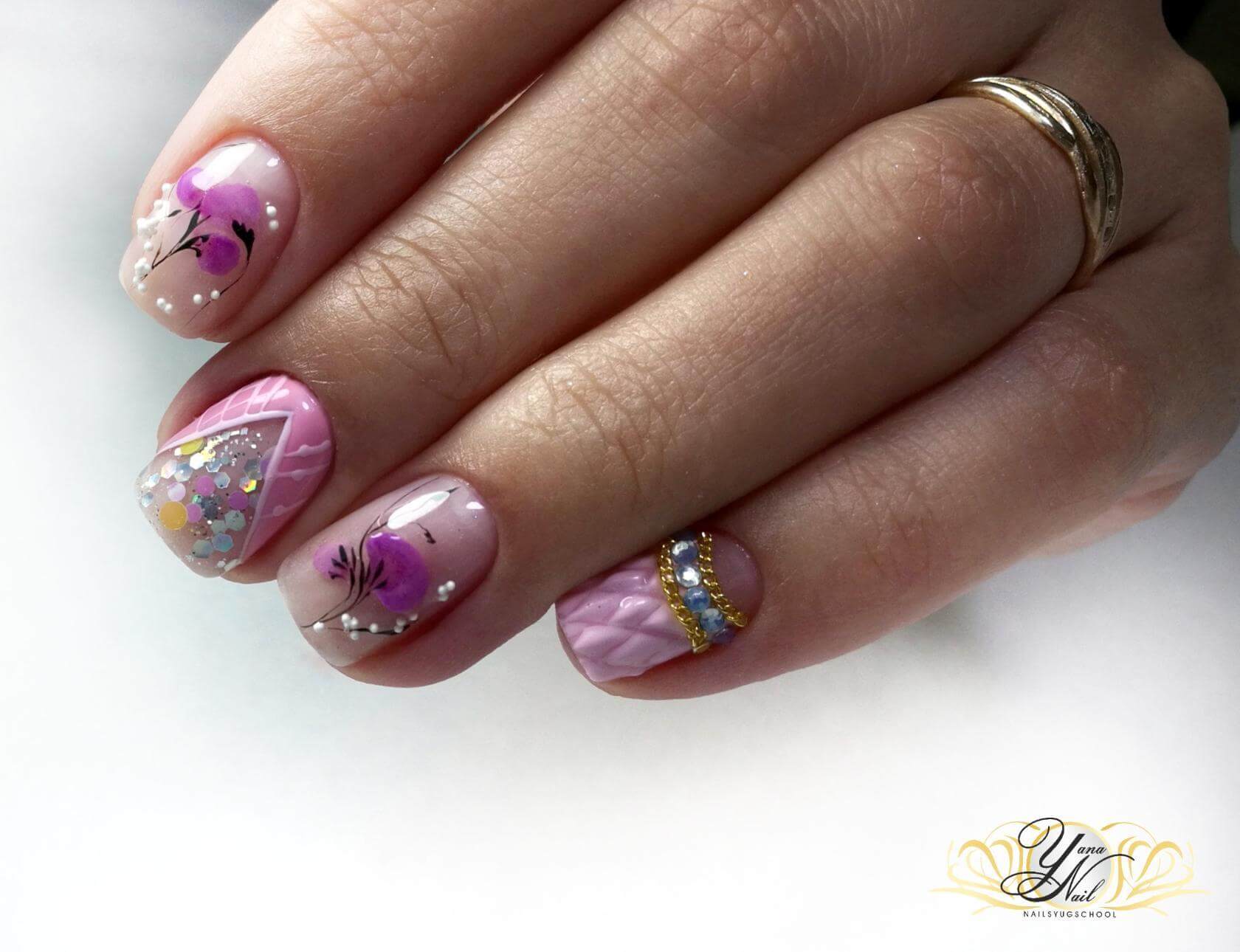 7 Pink manicure with design