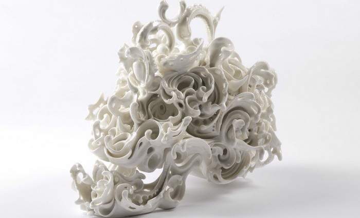 Katsuyo Aoki is a ceramic artist best known for her ceramic sculptures that apply delicate, swirling forms to dark subject matter.